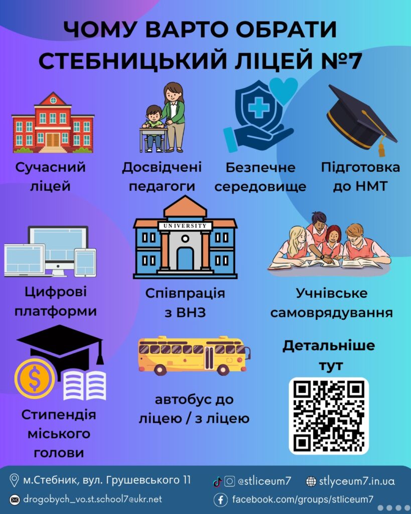 Управління освіти Дрогобицької міської ради інформує про можливості продовження навчання у 10-х класах закладів загальної середньої освіти нашої громади у 2026-2027 навчальному році.