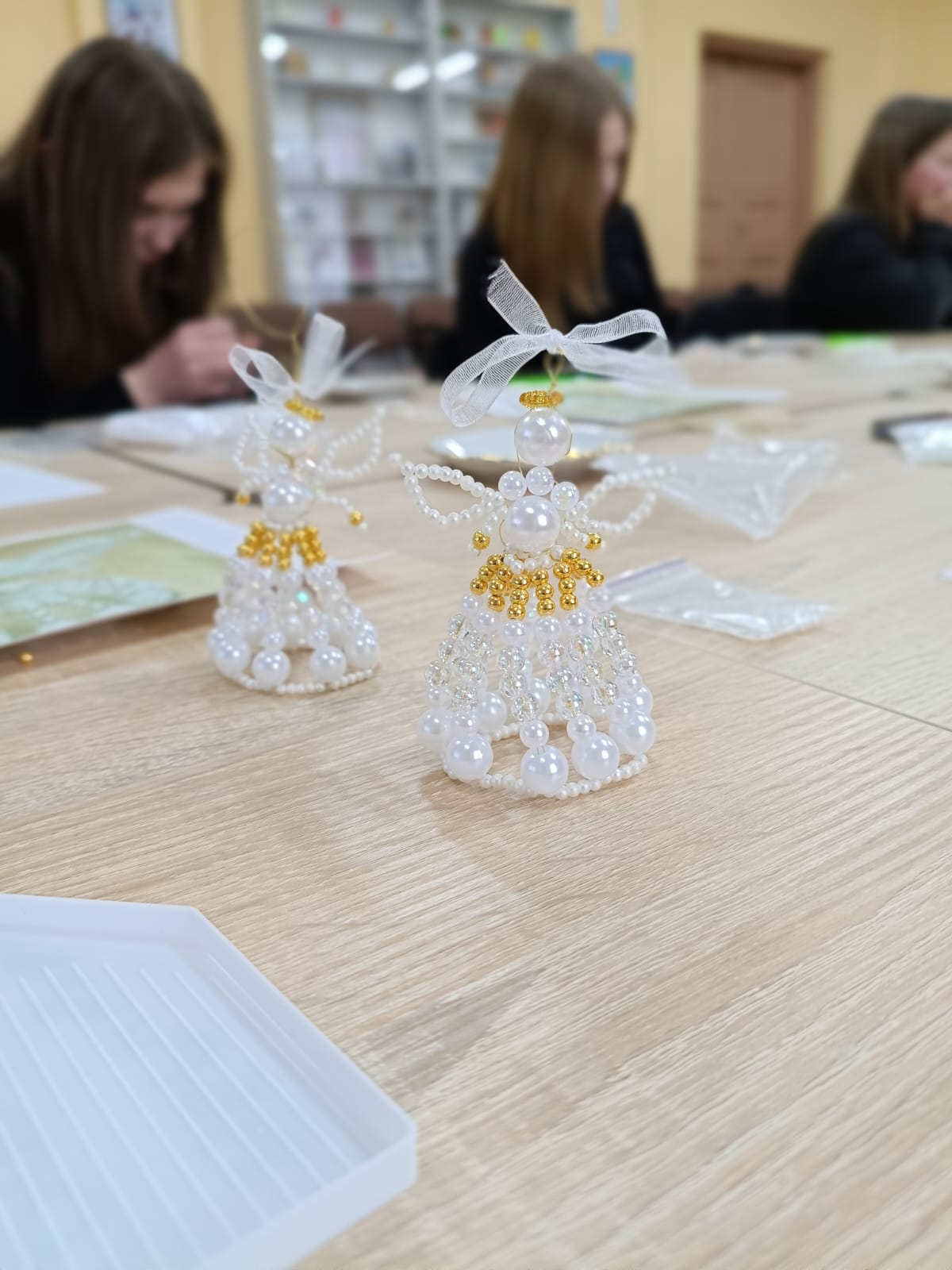 Разом із майстринею Наталією Совʼяк діти крок за кроком створювали невеликий, але дуже символічний оберіг. З бісеру народжувалися ніжні фігурки — з тендітними крильцями, власним характером і особливим настроєм.