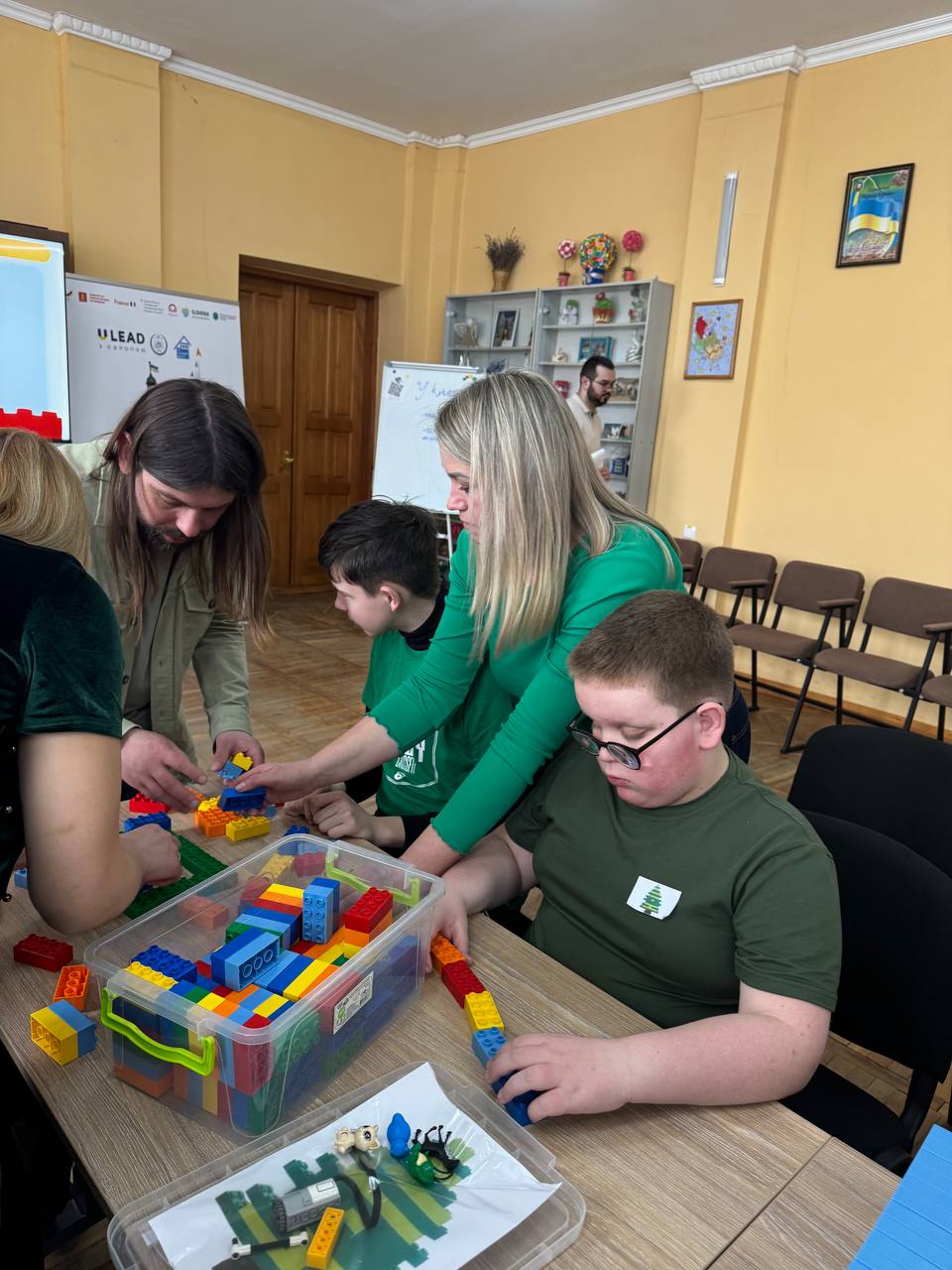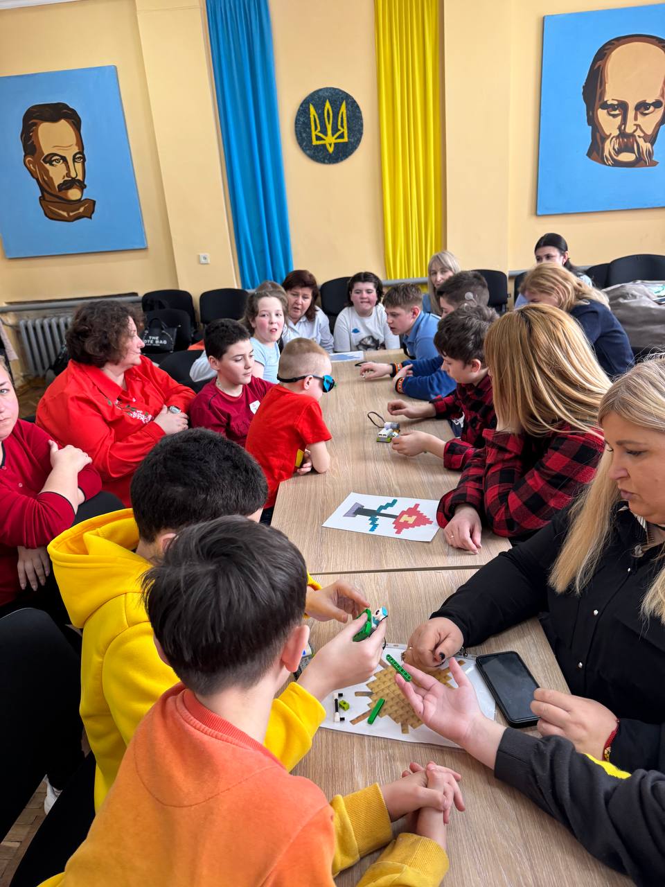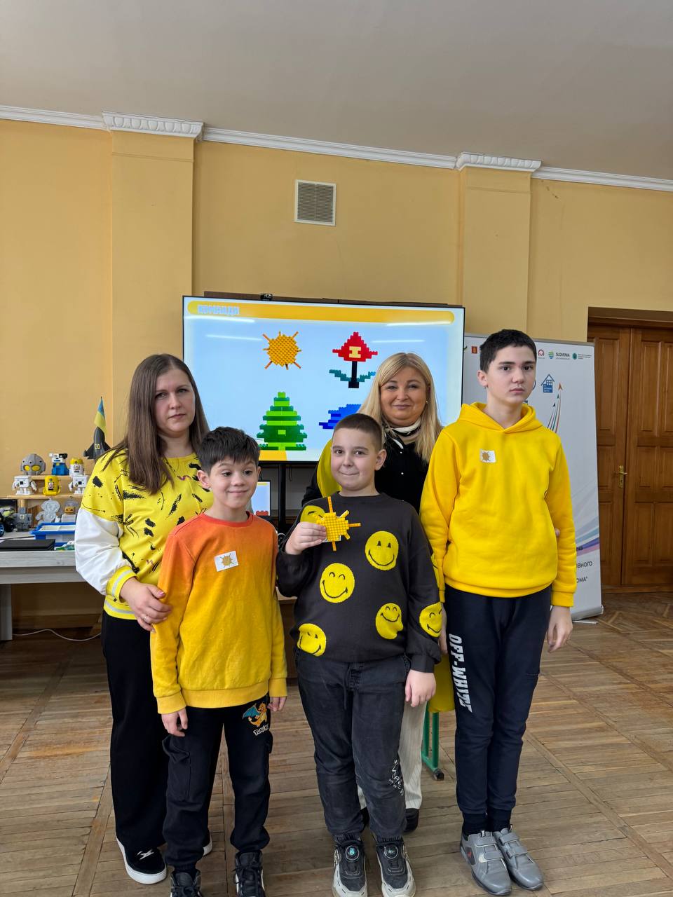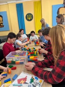 Заняття стало справжньо командною пригодою для учасників. Спочатку діти об’єдналися у групи разом із педагогами та виготовили з цеглинок LEGO логотипи своїх команд.