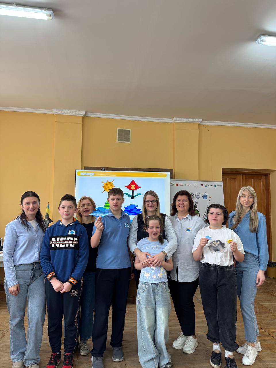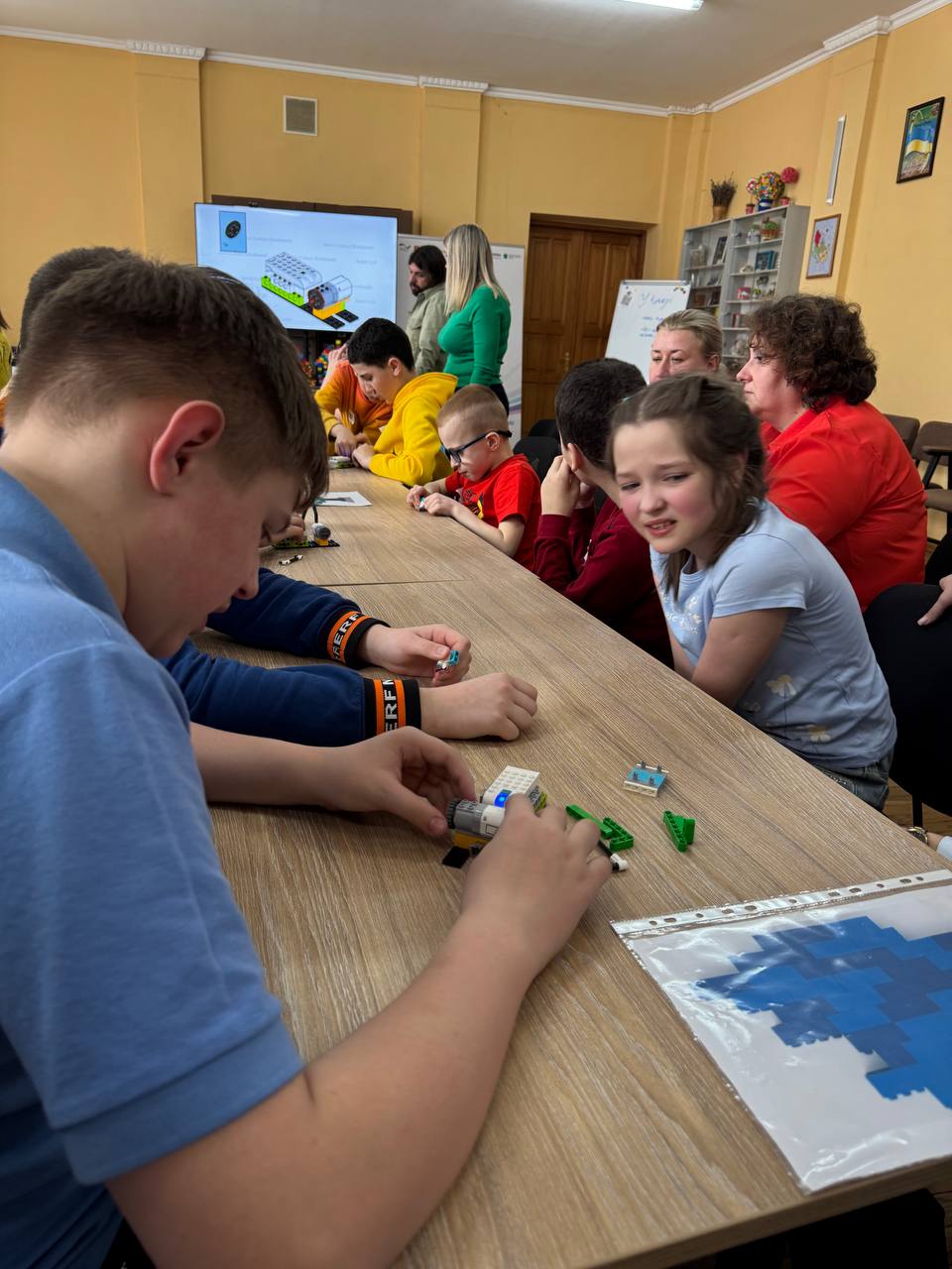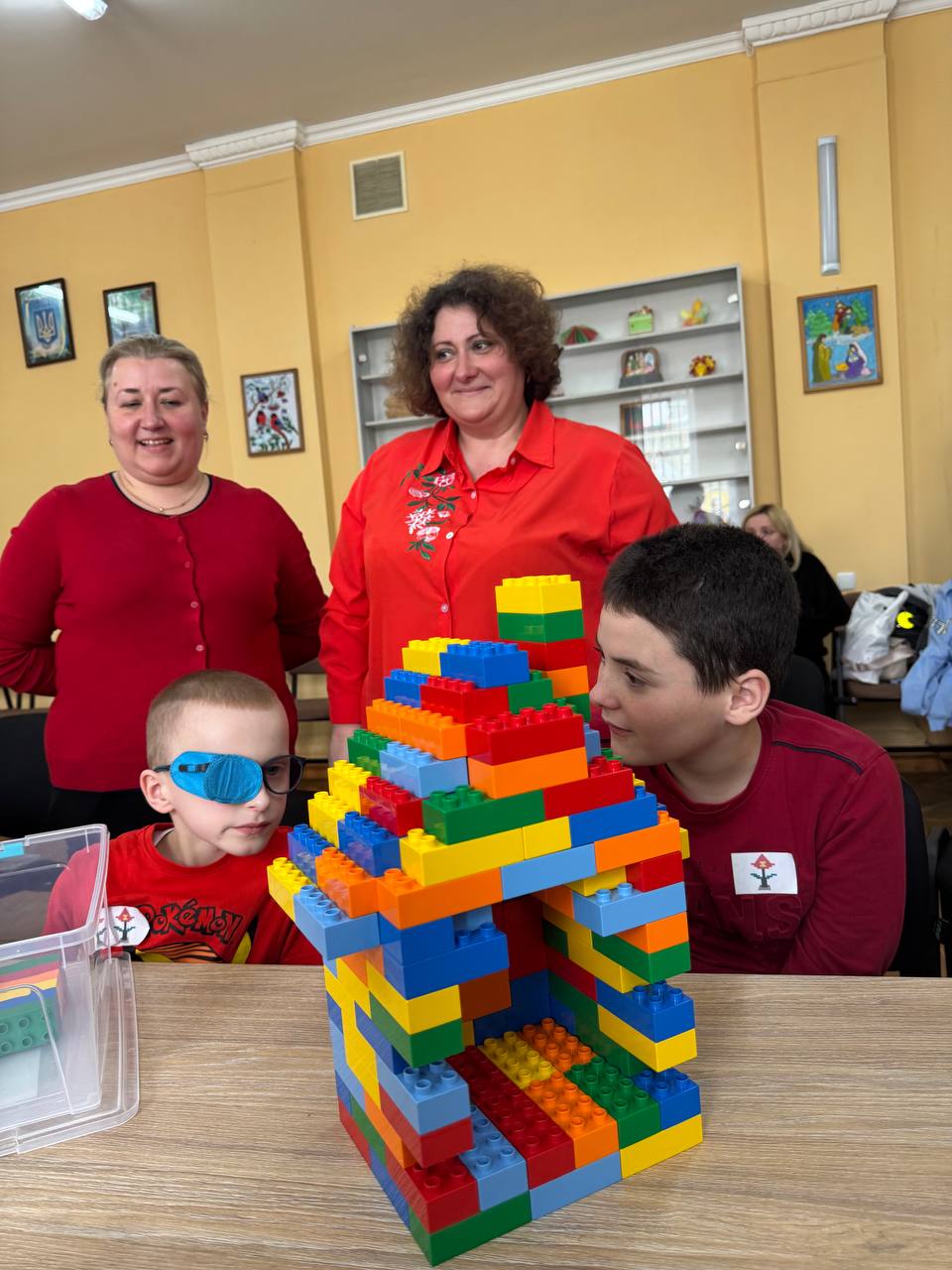 Заняття стало справжньо командною пригодою для учасників. Спочатку діти об’єдналися у групи разом із педагогами та виготовили з цеглинок LEGO логотипи своїх команд.