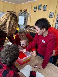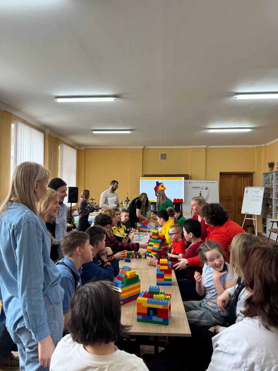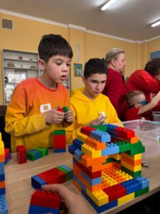 Далі — ще цікавіше. Щоб отримати елементи для фінального проєкту, команди дружно виконували різні завдання: шукали літери на LEGO-цеглинках, складали слова і речення, працювали з мовленням, рухалися, співали й взаємодіяли одне з одним.